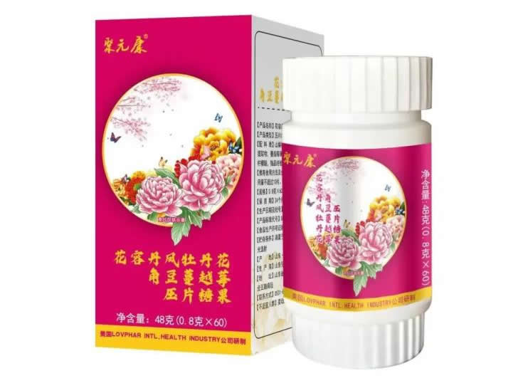 【配 料 表】山梨糖醇,丹鳳牡丹花瓣提取物,角豆提取物,蔓越莓果粉,蘋果粉,葛根粉,山藥粉,檸檬酸,微晶纖維素,硬脂酸鎂。
