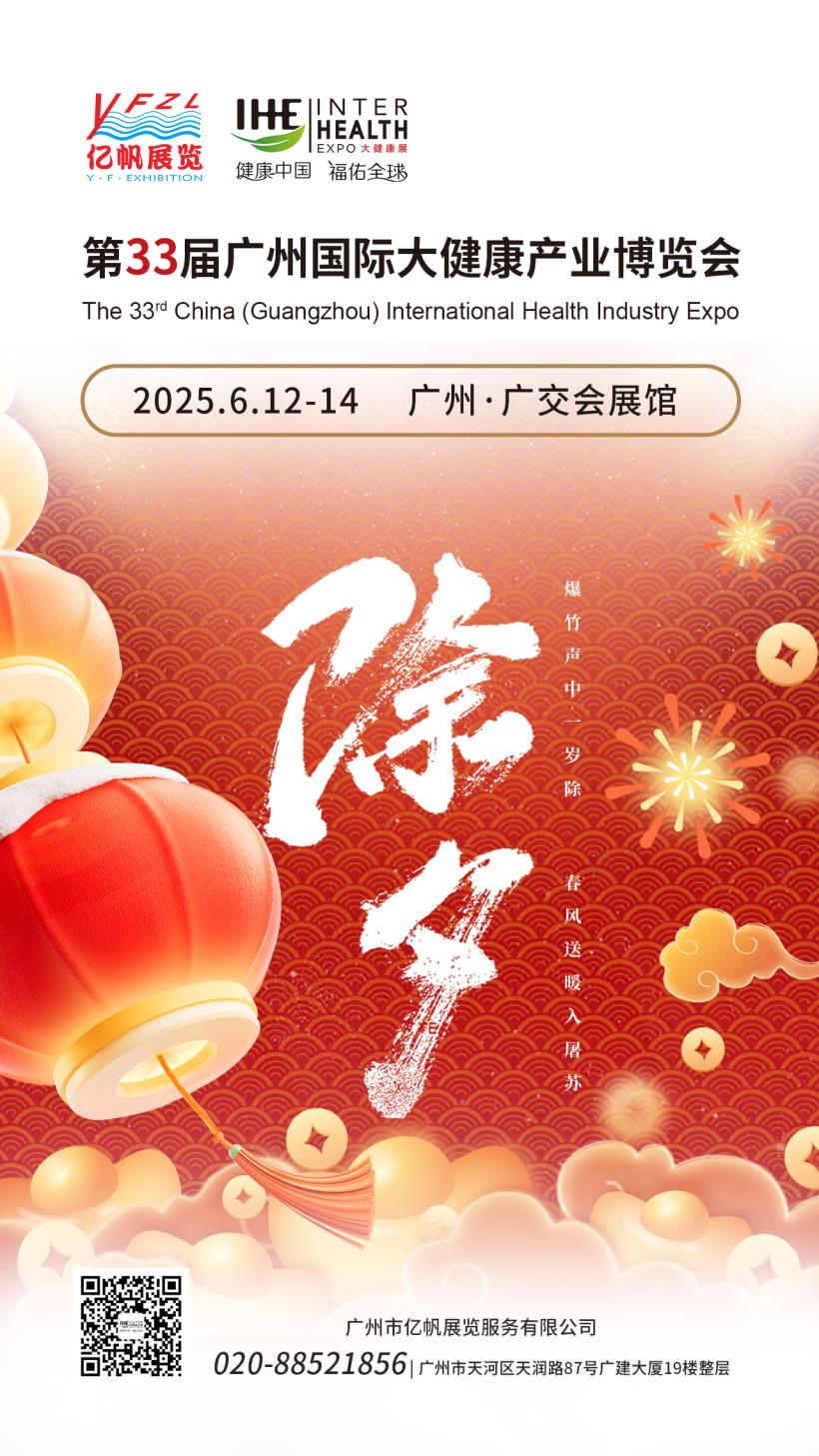 IHE China IHE第34屆廣州國際大健康產業博覽會將于2026年6月4-6日在廣州?廣交會展館舉行,大健康博覽會由廣州市億帆展覽服務有限公司主辦,是國內首個提出“大健康博覽會”概念。大健康展會已連續成功舉辦到第34屆,已成為亞太地區頗具規模的大健康博覽會,2023年榮獲廣州市商務局頒發“成功舉辦18年”獎牌!。