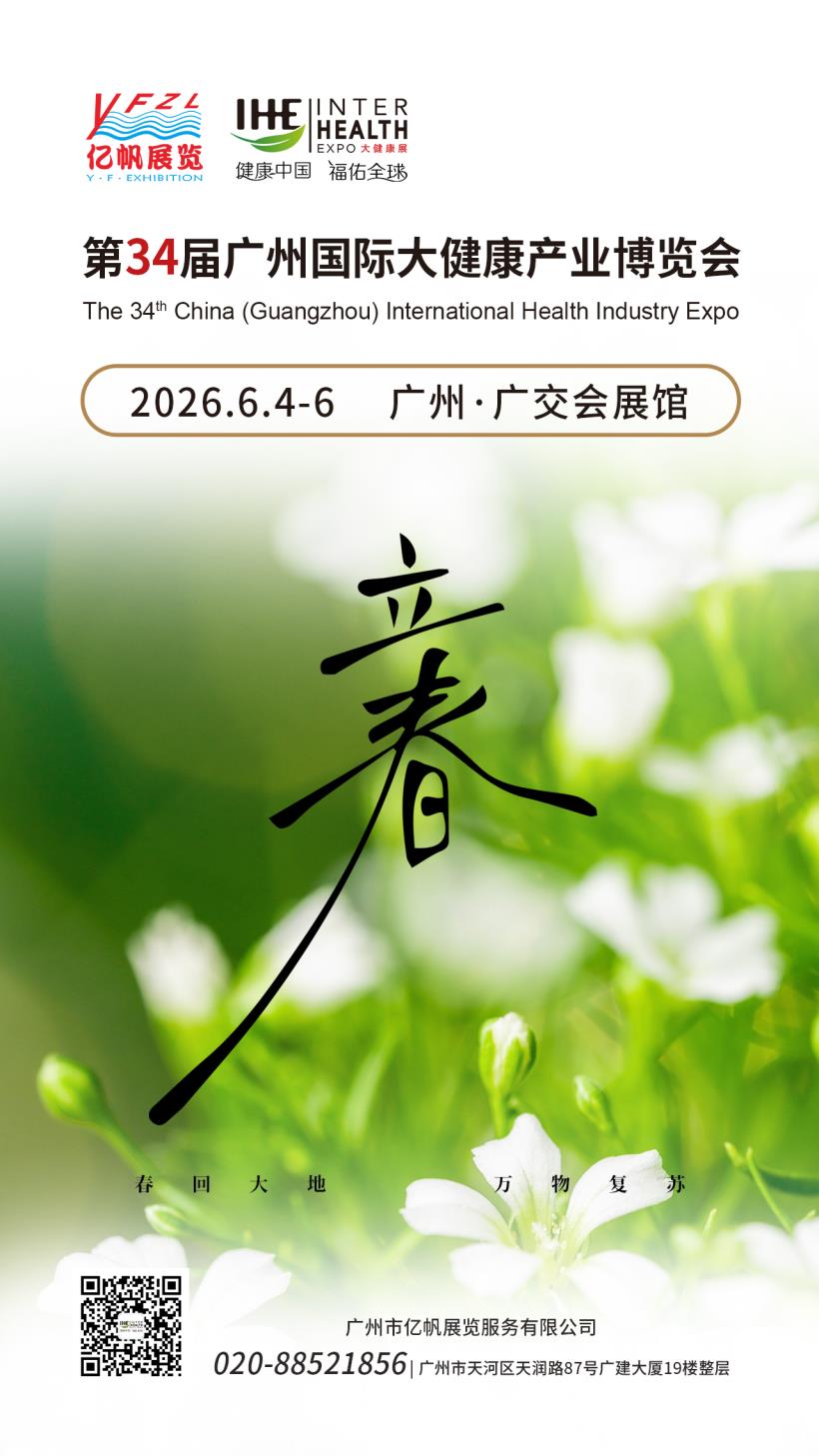 第34屆廣州國際大健康產業博覽會(IHE China)將于2026年6月4-6日在廣州廣交會展館舉行,誠摯邀請您來參展/參觀!
