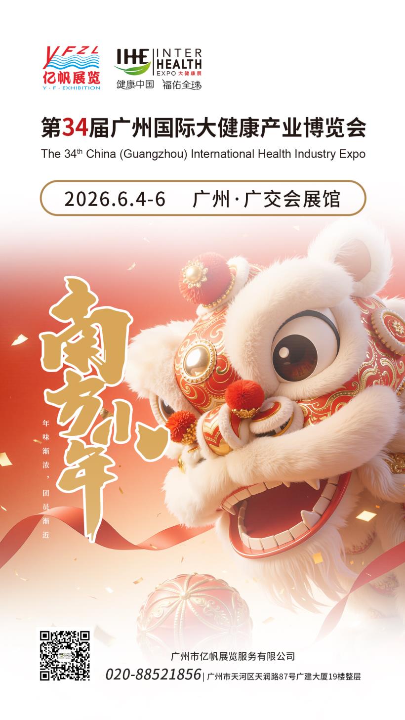 第34屆廣州國際大健康產業博覽會(IHE China)將于2026年6月4-6日在廣州廣交會展館舉行,誠摯邀請您來參展/參觀!
