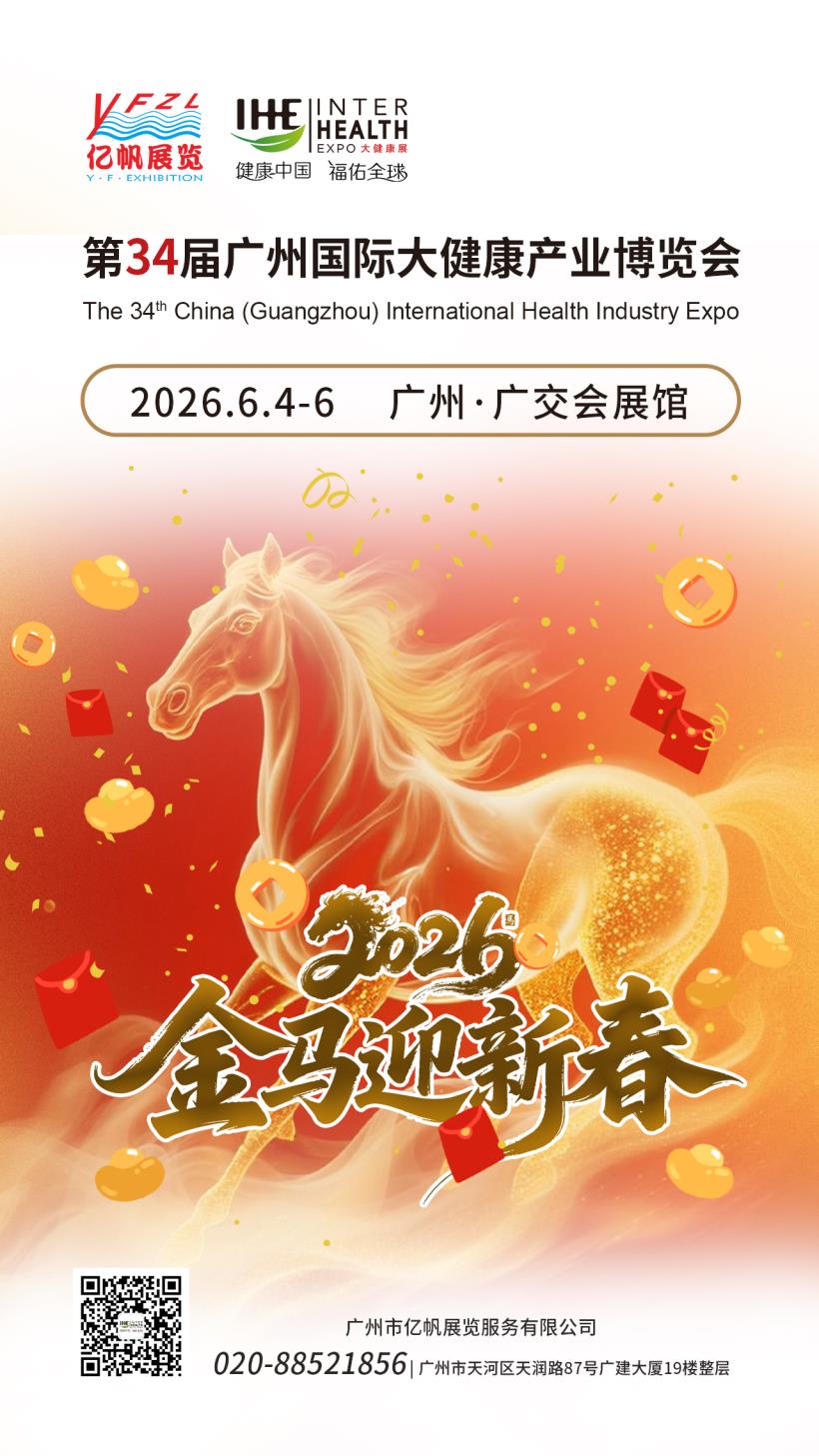 第34屆廣州國際大健康產業博覽會(IHE China)將于2026年6月4-6日在廣州廣交會展館舉行,誠摯邀請您來參展/參觀!