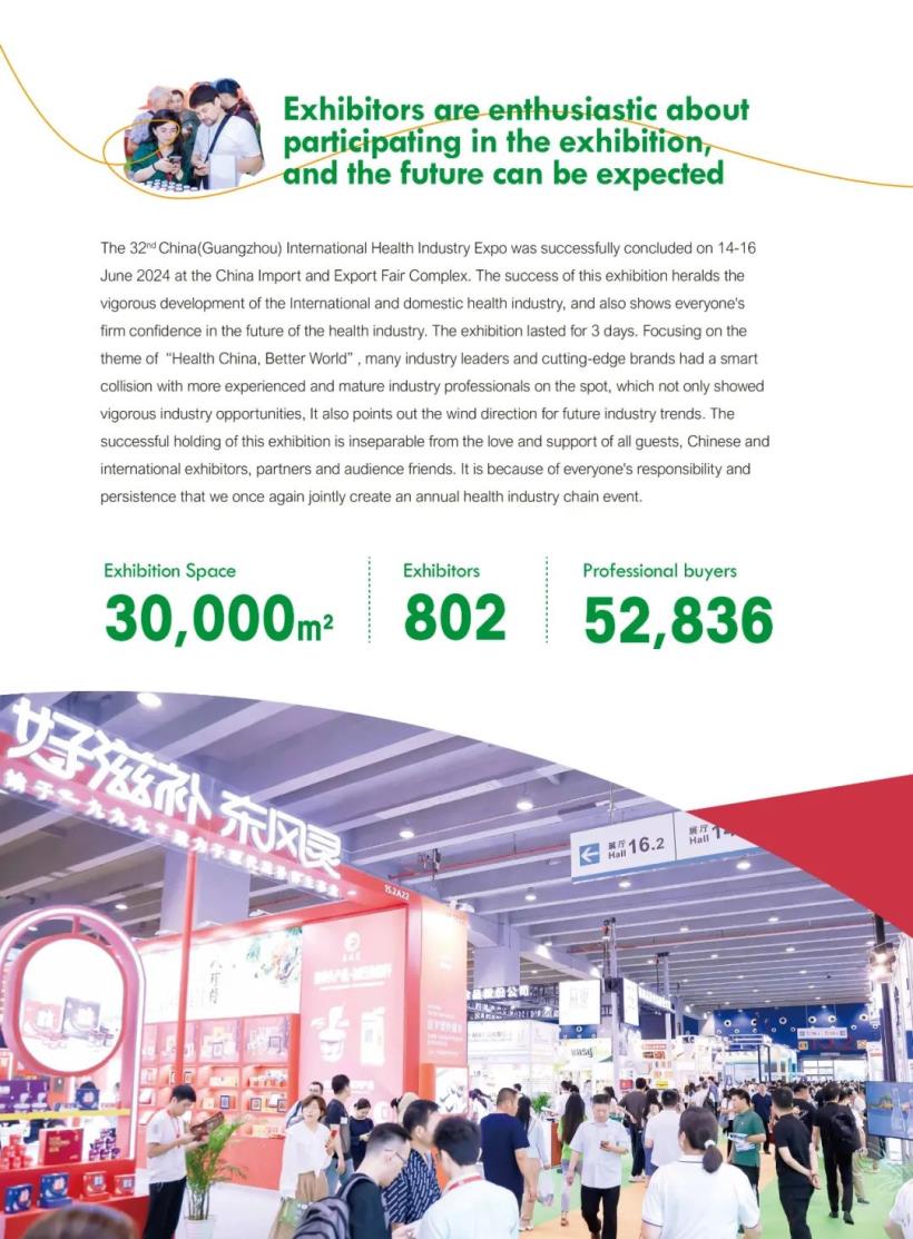 Sincere thanks to all exhibitors and buyers for their strong support of this exhibition! Looking forward to see you again at the 33rd China (Guangzhou) International Health Industry Expo held at the China Import and Export Fair Complex from June 12-14, 2025!